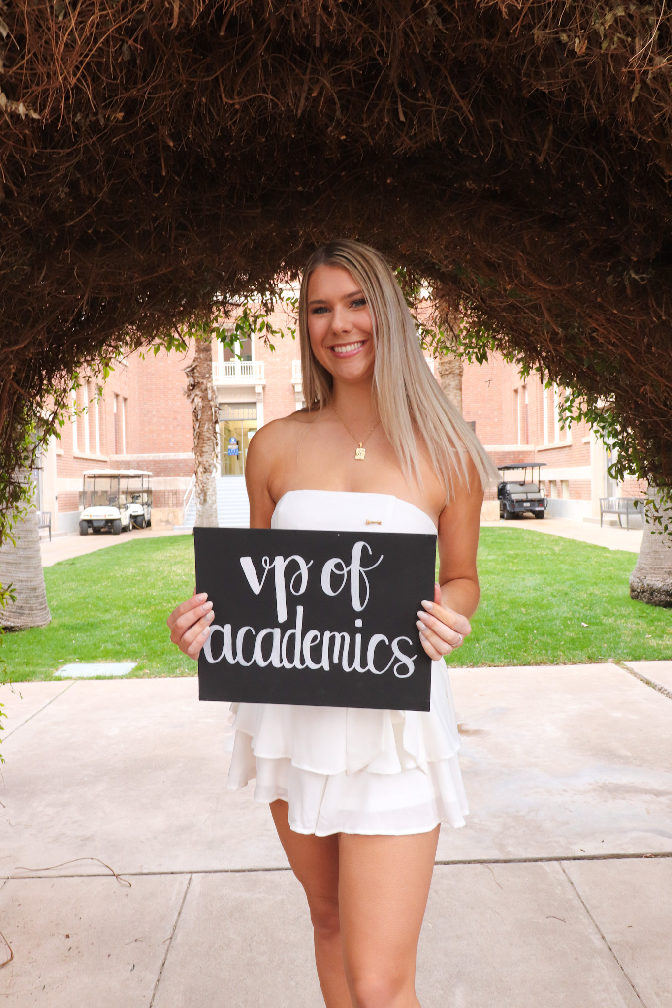 Position Description: As The Director of Academic Excellence, I am responsible for establishing the chapter GPA requirement and providing academic resources and incentives. Additionally, I, along with my team of coordinators, meet weekly with Kappas who are struggling academically through a program called Academic Progress Planning. Pledge Class: 2023