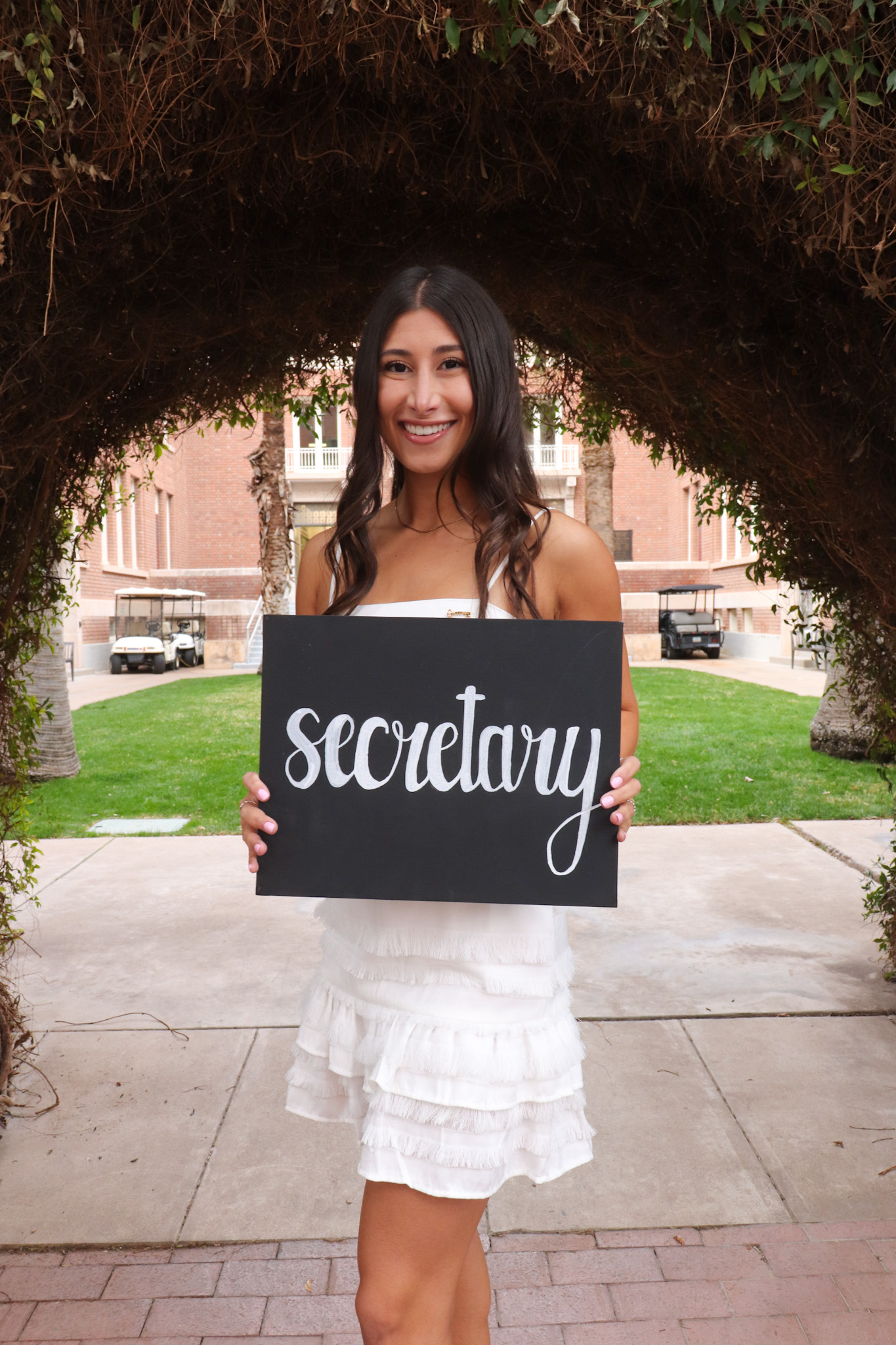 Position Description: As the Administration Director I keep track of attendance for Kappa events and maintain an accurate chapter roster. I also, records meeting minutes for leadership team discussions and chapter as well as manage the yearly composite. Pledge Class: 2023 major - biosystems engineering hometown- phoenix AZ hobbies- taking photos, reading, hiking, and hanging out with friends at kappa! favorite kappa memory - just hanging out at kappa with friends or watching a movie on the brouch